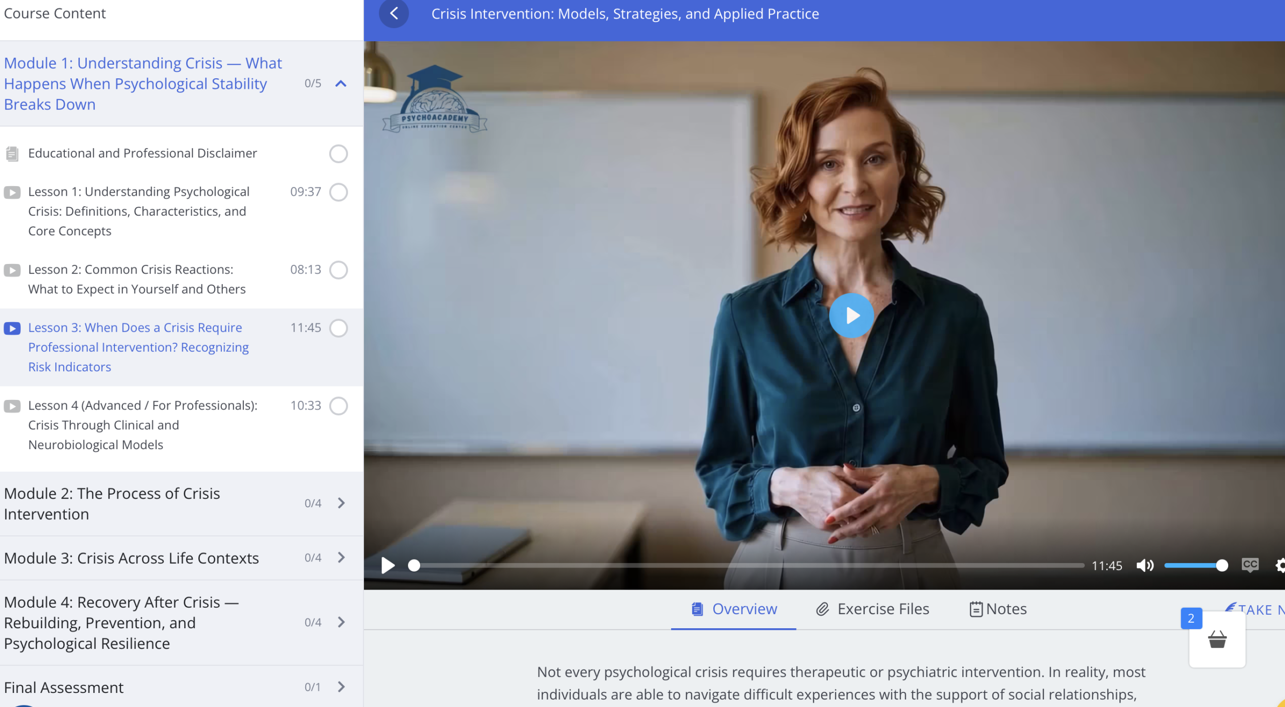 Crisis Intervention – Stages, Strategies, and Practical Frameworks is a structured educational course designed for individuals who want to deepen their understanding of how to support others during emotionally intense, destabilizing, or high-stress situations.